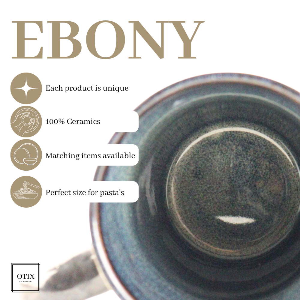 Let op: Alle onderdelen van de OTIX EBONY-series zijn uniek en met de hand gemaakt. Dit betekent dat elk item een eigen, uniek design heeft. De producten worden zorgvuldig gehard in de oven, waarbij de exacte plaats in de oven de kleur, glans of matte afwerking en het patroon van elk stuk beïnvloedt. Hierdoor kan het zijn dat je binnen je bestelling verschillende variaties ontvangt, zoals glanzende of matte afwerkingen, of subtiele kleurnuances. De sets worden willekeurig samengesteld en zijn vooraf verpakt. Elk stuk is een echt, exclusief kunstwerkje!