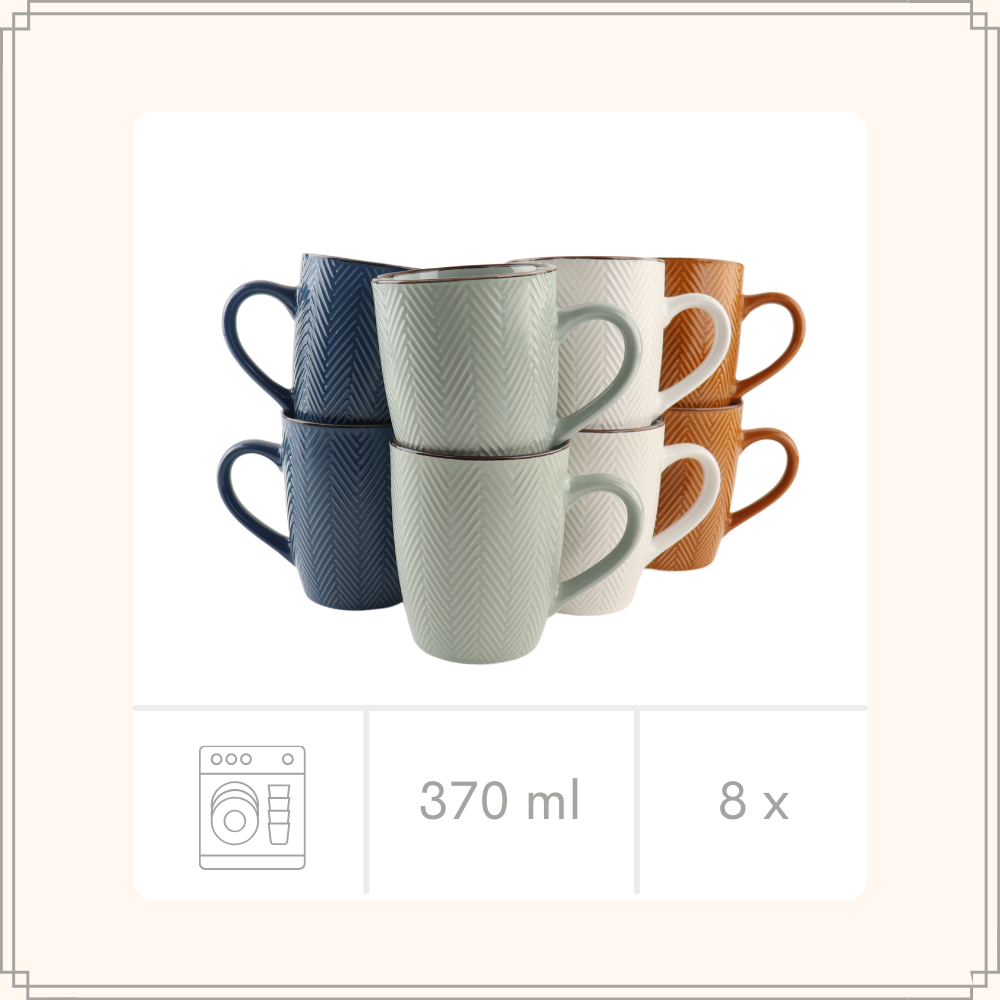 De OTIX koffiekopjes met oor zijn een set van 8 koffietassen gemaakt van aardewerk, elk met een inhoud van 370 ml. Deze kleurrijke kopjes zijn beschikbaar in verschillende kleuren en zijn ideaal voor het serveren van koffie met een vleugje stijl. Het aardewerk zorgt voor duurzaamheid en een rustieke uitstraling, perfect voor dagelijks gebruik thuis of in koffiebars.