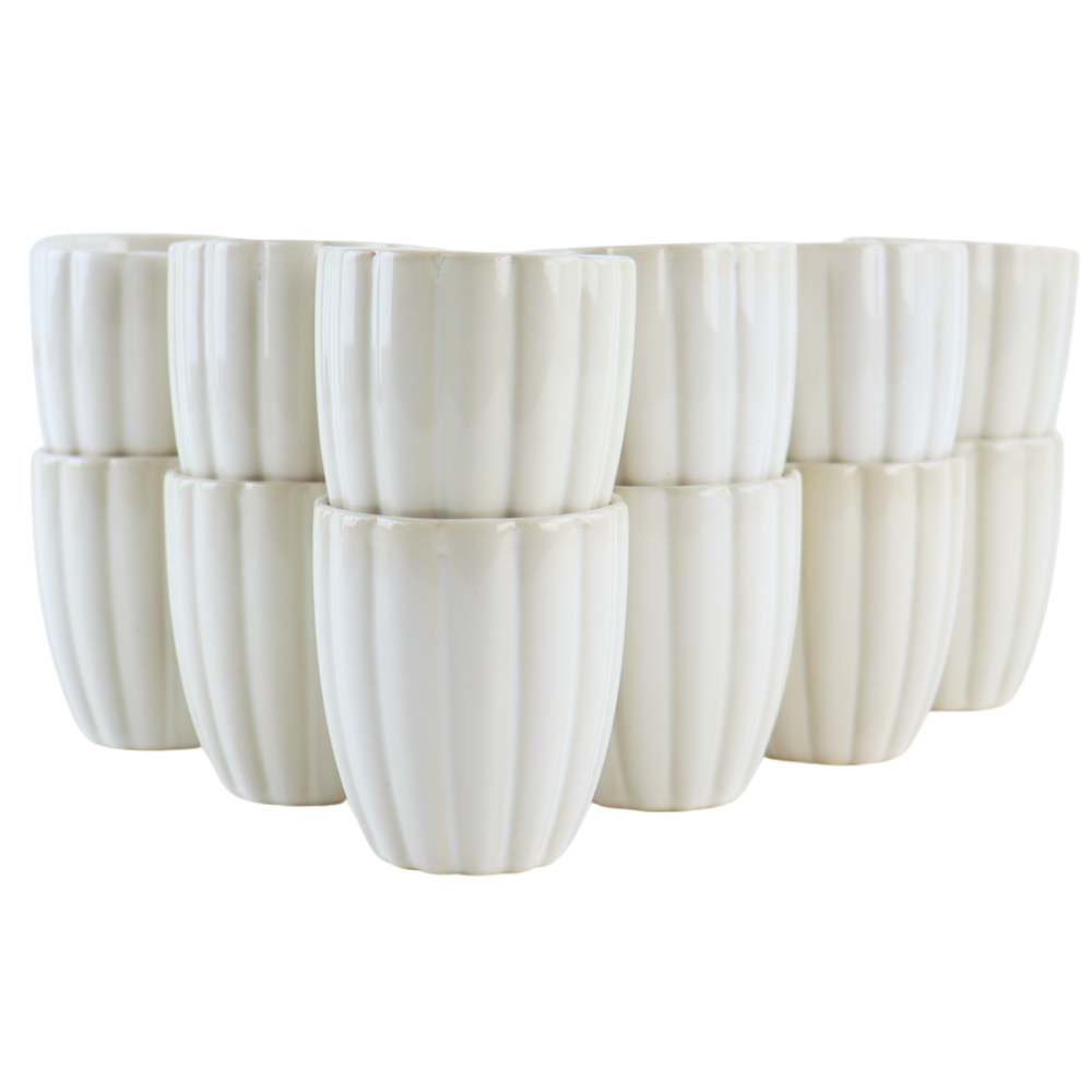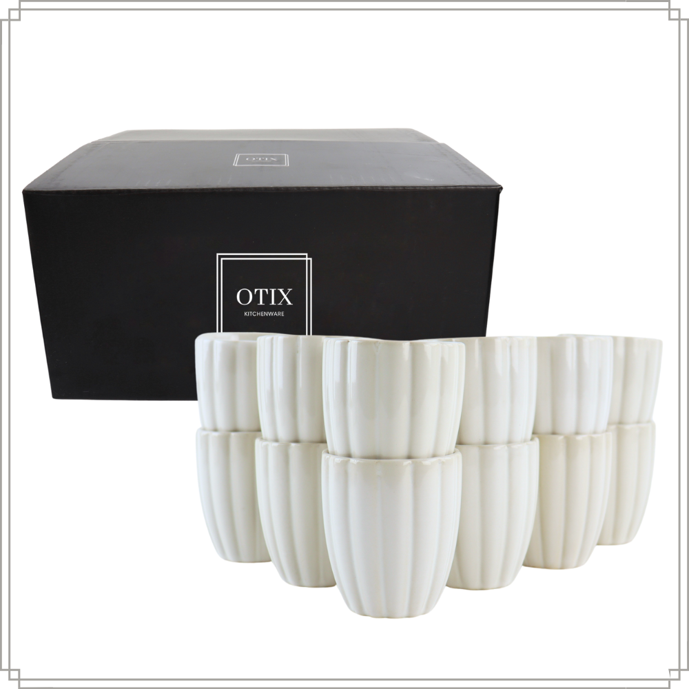 Geniet van je favoriete warme dranken met de OTIX Koffiekopjes zonder Oor, een set van 12 stijlvolle theekopjes. Deze elegante mokken zijn perfect voor thee, espresso of kleine porties koffie. Met een inhoud van 120 ml en een modern ribbeldesign zijn ze niet alleen functioneel, maar ook een mooie aanvulling op je tafelsetting.
