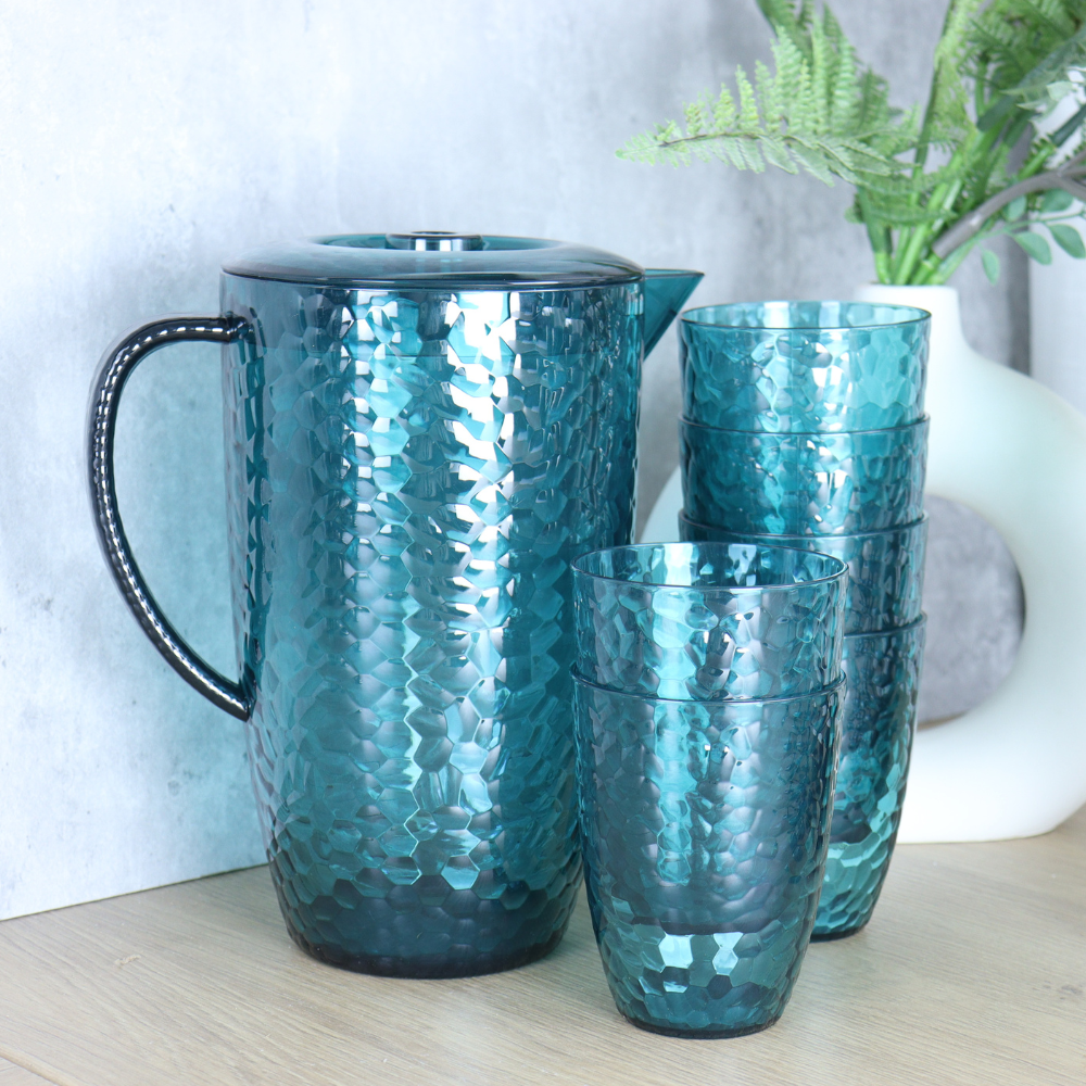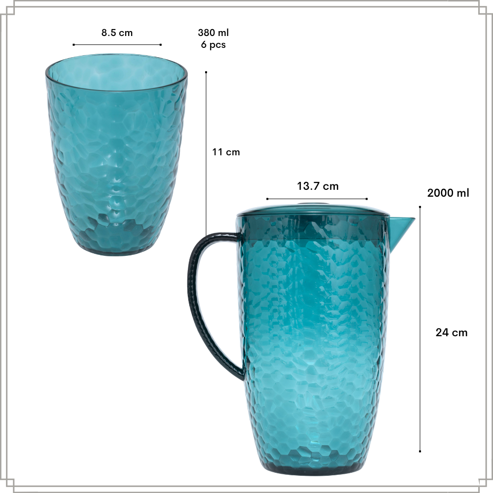 Geniet van je favoriete drankjes met de OTIX 7-delige drinkglazen en limonadekan set. Deze stijlvolle en praktische set bestaat uit 6 herbruikbare waterglazen en 1 ruime schenkkan met deksel, perfect voor water, limonade, frisdrank of cocktails. Het moderne grijze design geeft een elegante uitstraling en past bij elke tafelsetting, zowel binnen als buiten.