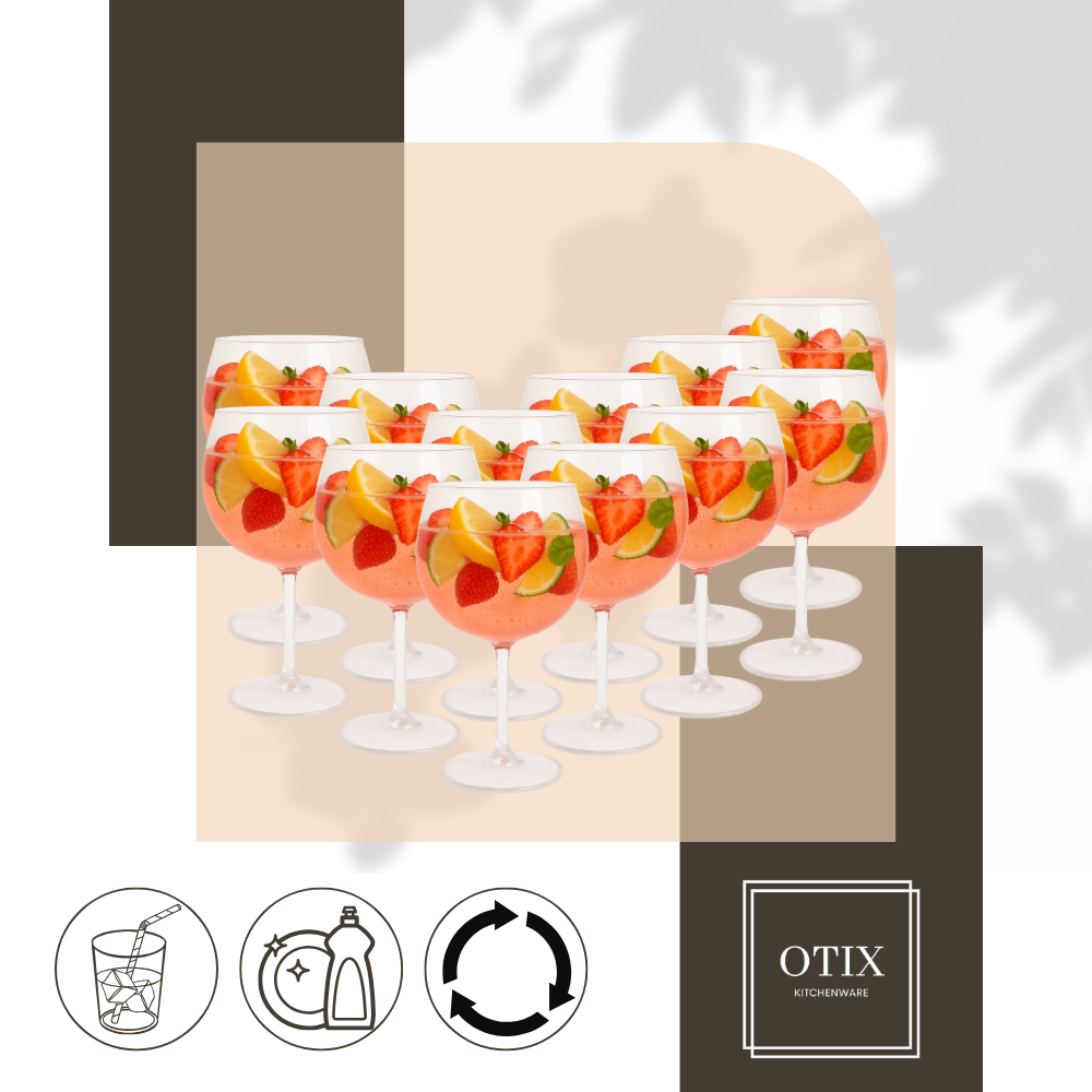 OTIX Kunststof Gin Tonic Glazen 12 Stuks Cocktailglazen Strand Camping Servies 570ML OCEANI