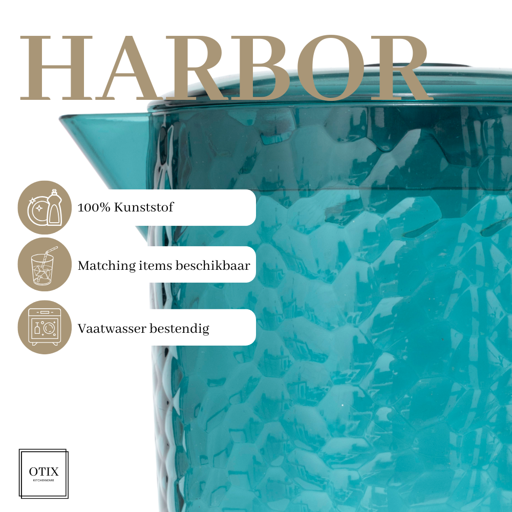 De OTIX Kunststof Schenkkan HARBOR is een stijlvolle en praktische waterkan met een inhoud van 2 liter, ideaal voor het serveren van water, limonade, ijsthee en andere dranken.