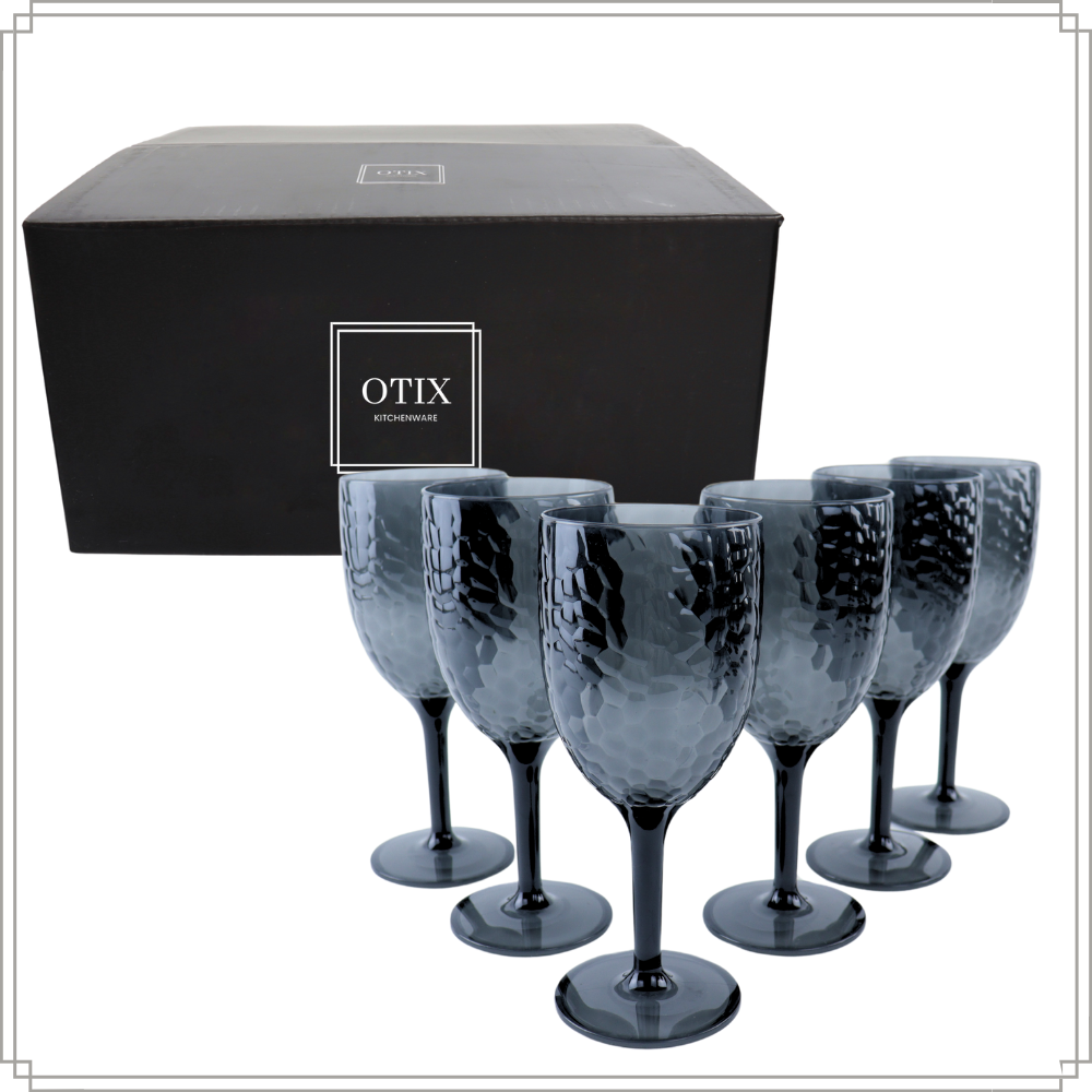 OTIX Kunststof Wijnglazen Herbruikbaar Set van 6 voor Rode en Witte Wijn Grijs 350ml ZEPHYR