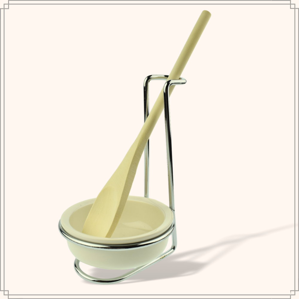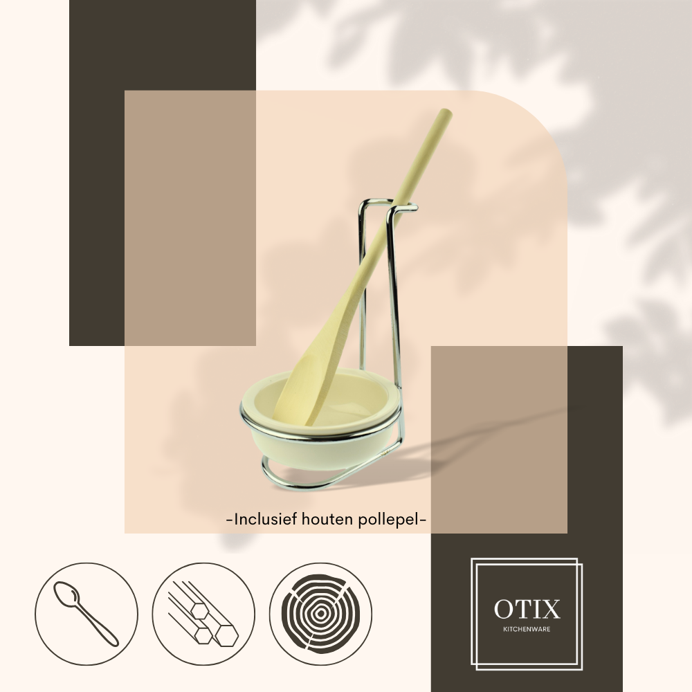 - Plaats je lepel tijdens het koken in de RVS lepelhouder