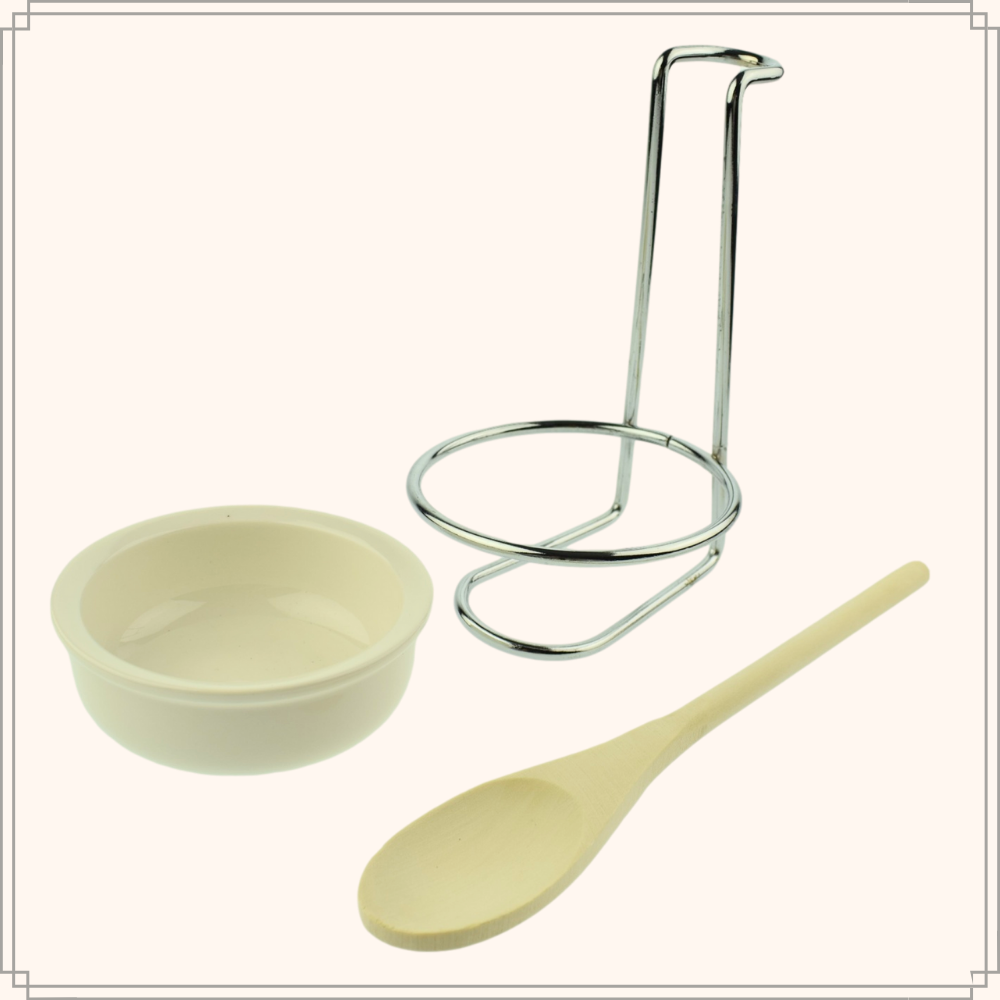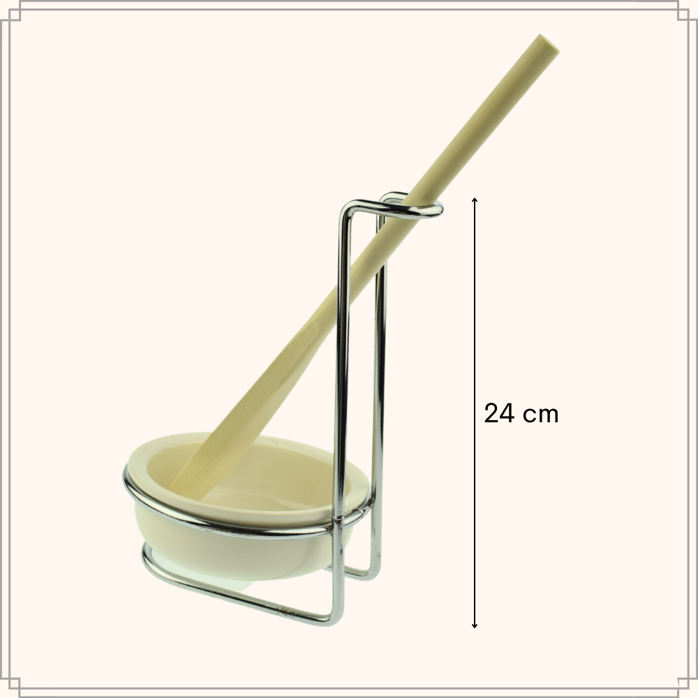 Leg je gebruikte pollepel op deze lepelhouder tijdens het koken en voorkom een vies aanrecht.