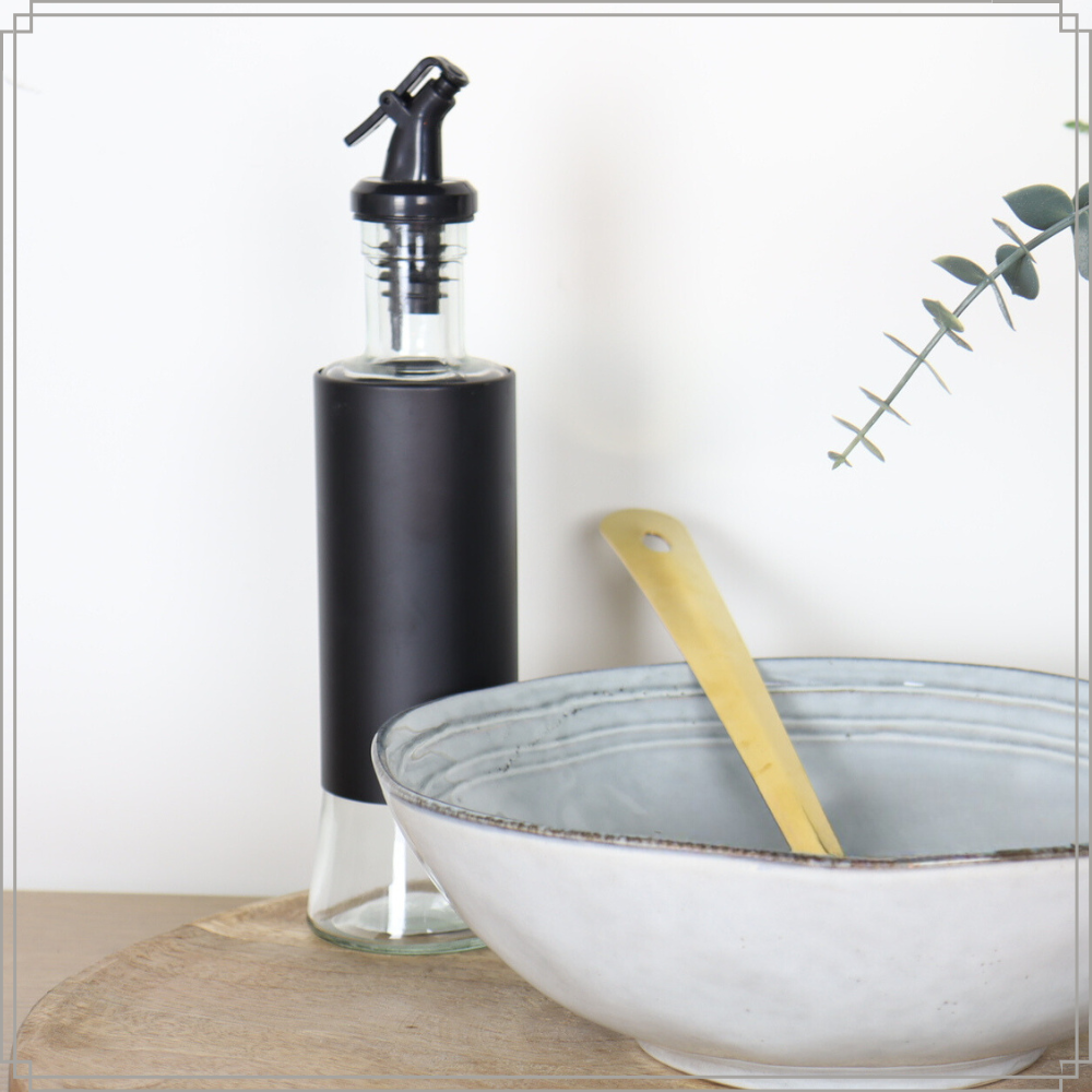 De OTIX Olijfolie Fles is niet alleen een praktisch keukengerei maar ook een stijlvolle toevoeging aan je keukeninrichting. Met zijn eigentijdse ontwerp, zwarte kleur, een royale inhoud van 350ml, en voorzien van een handige schenktuit, brengt deze glazen fles functionaliteit en elegantie samen.