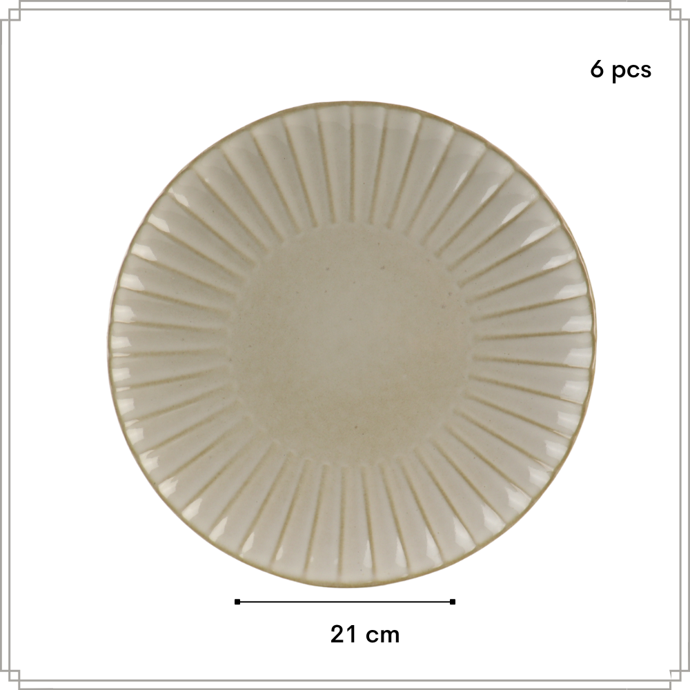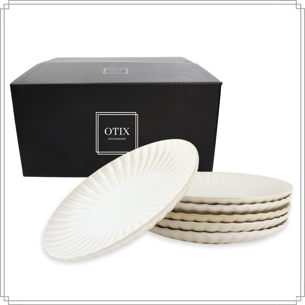 Breng elegantie aan je tafel met de OTIX Ontbijtbordenset voor 6 personen. Deze prachtige dessertborden van 21 cm zijn perfect voor het serveren van ontbijt, desserts of kleine gerechten. Gemaakt van hoogwaardig wit keramiek en voorzien van een stijlvol ribbeldesign, voegen ze een moderne uitstraling toe aan elke tafelsetting. Met afmetingen van 21 x 21 x 2,5 cm zijn de borden veelzijdig en praktisch in gebruik. Bovendien zijn ze vaatwasserbestendig, wat zorgt voor eenvoudig onderhoud. Een must-have voor elke liefhebber van mooi servies! Let op: Alle onderdelen van de OTIX SOLIS-series zijn uniek en met de hand gemaakt. Dit betekent dat elk item een eigen, uniek design heeft. De producten worden zorgvuldig gehard in de oven, waarbij de exacte plaats in de oven de kleur, glans of matte afwerking en het patroon van elk stuk beïnvloedt. Hierdoor kan het zijn dat je binnen je bestelling verschillende variaties ontvangt, zoals glanzende of matte afwerkingen, of subtiele kleurnuances. De sets worden willekeurig samengesteld en zijn vooraf verpakt. Elk stuk is een echt, exclusief kunstwerkje!