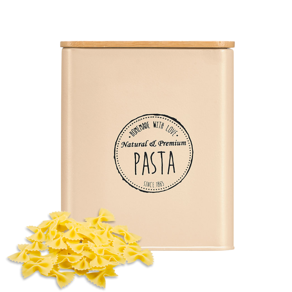 Met de OTIX Pasta pot bewaar je pasta langer vers en georganiseerd. Deze beige metalen Pasta bewaarpot heeft een strak en tijdloos ontwerp dat in elke keuken past. De deksel sluit de pot goed af. De stevige constructie van de pot maakt hem duurzaam en functioneel, ideaal voor dagelijks gebruik in je keuken. Let op! De bewaarpot is vaatwasserbestendig echter de deksel zelf niet!