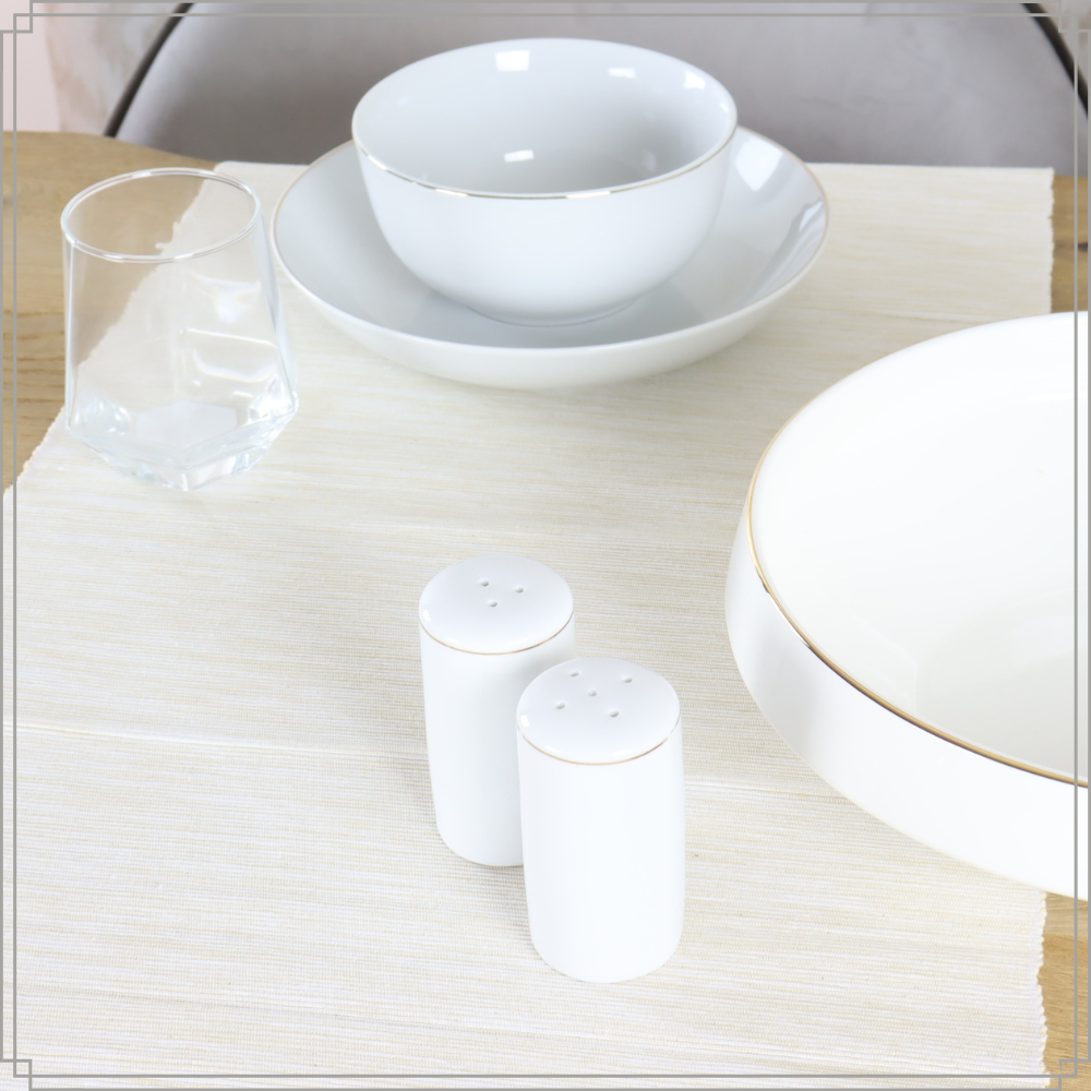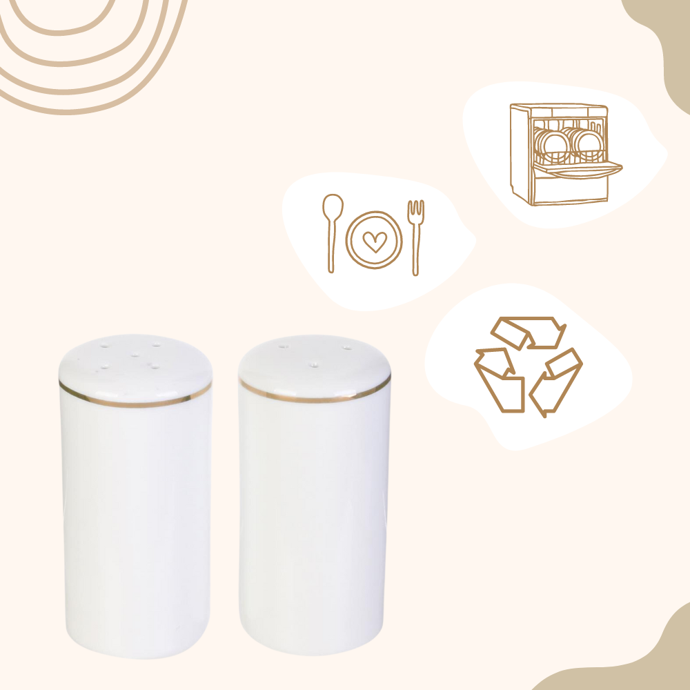 Het OTIX Peper en Zout stel is een elegante en stijlvolle toevoeging aan uw tafel. Het stel is gemaakt van hoogwaardig porselein en heeft een witte kleur met een gouden rand. Het setje is perfect om uw maaltijd op smaak te brengen met een vleugje peper en zout. Het stijlvolle ontwerp past bij elke keukenstijl en is geschikt voor zowel dagelijks gebruik als voor speciale gelegenheden.