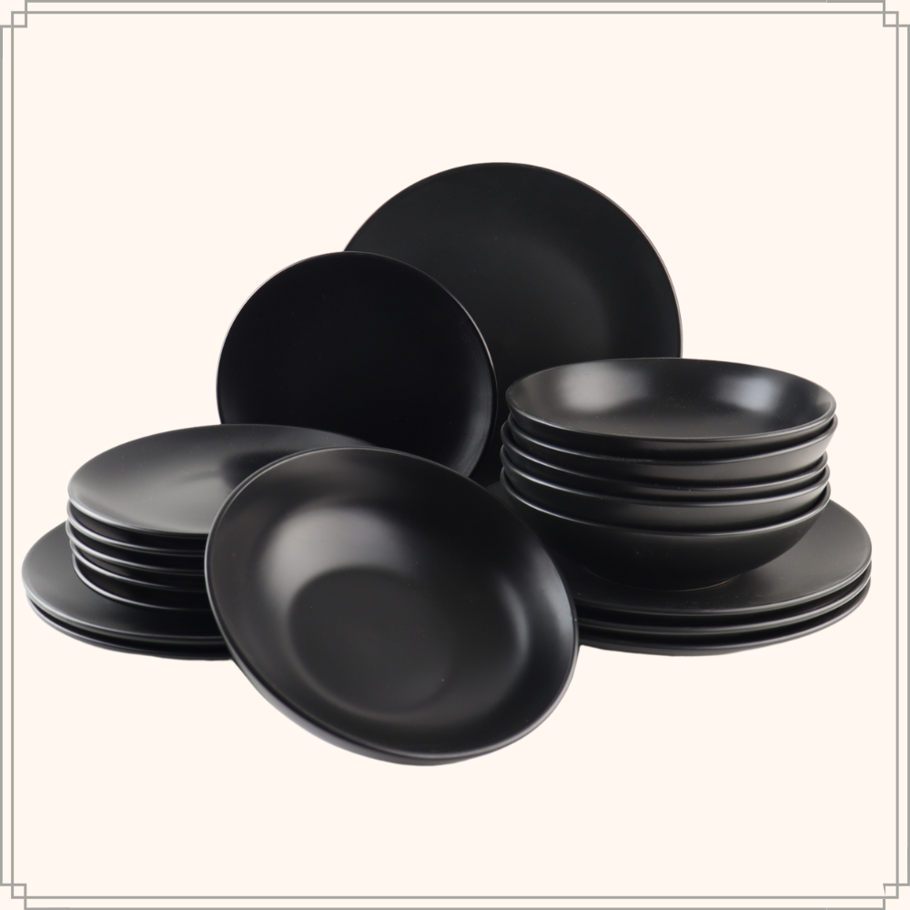De OTIX Bordenset met Dinerborden en Diepe borden voor 6 personen is een must-have toevoeging aan je serviescollectie. Deze 18-delige set, in een elegante matte zwarte afwerking, voegt een eigentijdse uitstraling toe aan je eettafel. Of je nu geniet van een feestelijk diner of een hartverwarmende soep, deze aardewerken serviesstukken bieden de perfecte presentatie. Laat je gasten verrassen door de verfijnde charme van de OTIX Bordenset en geniet van heerlijke maaltijden in stijl.