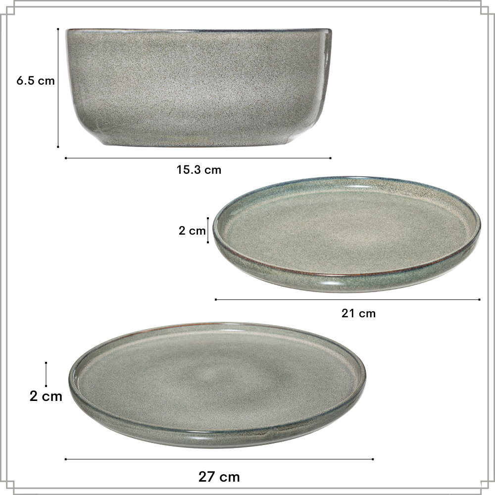 De OTIX Servies Set biedt een perfecte combinatie van stijl en functionaliteit voor elke keuken. Deze set bevat zes soepkommen (600 ml), zes ontbijtborden (21 cm), en zes dinerborden (27 cm), allemaal vervaardigd uit hoogwaardig grijs aardewerk. De soepkommen zijn ideaal voor het serveren van soep, ontbijtgranen, en salades, terwijl de ontbijtborden en dinerborden veelzijdig genoeg zijn voor ontbijt, desserts, en volledige maaltijden. Het stijlvolle en duurzame design is vaatwasserbestendig en geschikt voor elke setting, waardoor je eetmomenten naar een hoger niveau worden getild.