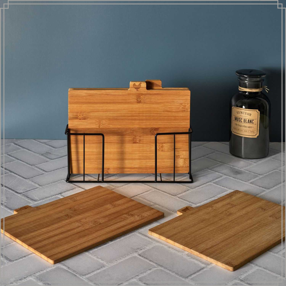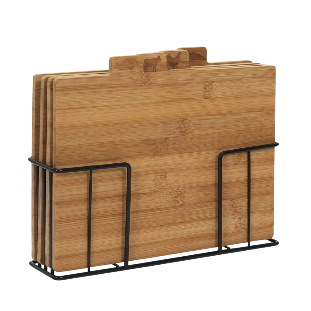 De OTIX Snijplankenset met houder combineert stijl en functionaliteit in uw keuken. Deze set bestaat uit vier bamboe snijplanken, ideaal voor het bereiden van verschillende soorten voedsel zonder kruisbesmetting. De snijplanken worden netjes opgeborgen in een strak ontworpen zwarte metalen houder, wat zorgt voor een georganiseerde en moderne uitstraling op het aanrecht. Bamboe is van nature antibacterieel en duurzaam, waardoor deze set niet alleen mooi, maar ook milieuvriendelijk is. Perfect voor de bewuste en stijlvolle kok.
