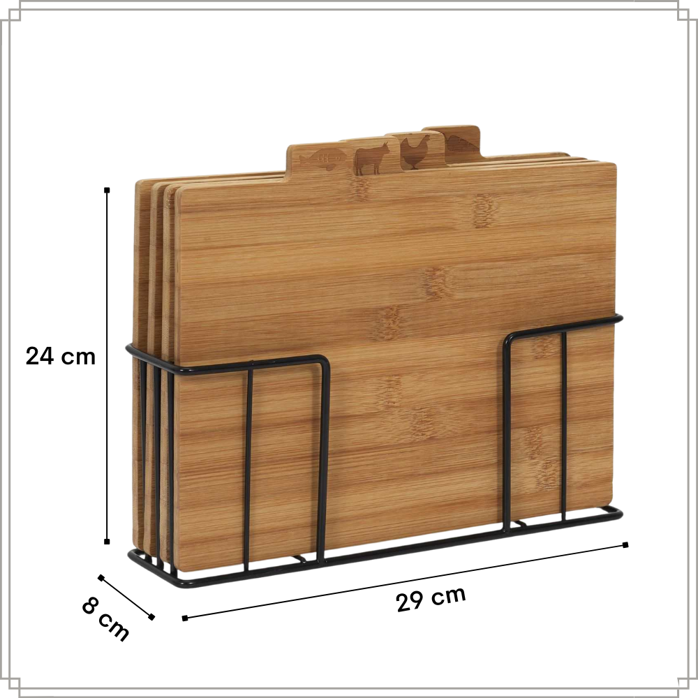 De OTIX Snijplankenset met houder combineert stijl en functionaliteit in uw keuken. Deze set bestaat uit vier bamboe snijplanken, ideaal voor het bereiden van verschillende soorten voedsel zonder kruisbesmetting. De snijplanken worden netjes opgeborgen in een strak ontworpen zwarte metalen houder, wat zorgt voor een georganiseerde en moderne uitstraling op het aanrecht. Bamboe is van nature antibacterieel en duurzaam, waardoor deze set niet alleen mooi, maar ook milieuvriendelijk is. Perfect voor de bewuste en stijlvolle kok.
