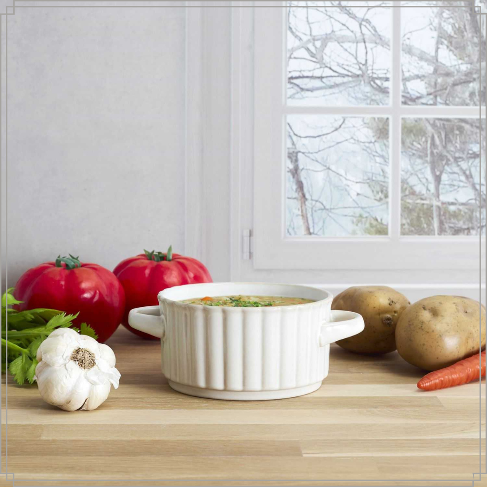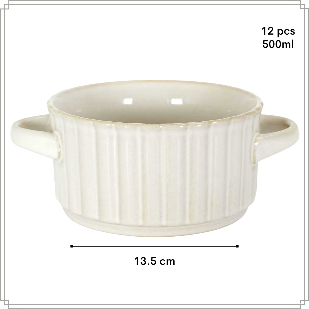 Geniet van je favoriete soepen met de OTIX Soepkommen met Oor, een set van 12 stuks in een stijlvol ribbeldesign. Deze elegante witte soeptassen zijn vervaardigd uit hoogwaardig keramiek en bieden een capaciteit van 500 ml, perfect voor zowel kleine als grote porties.
