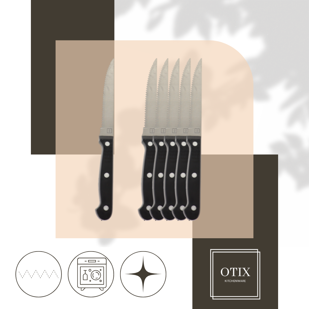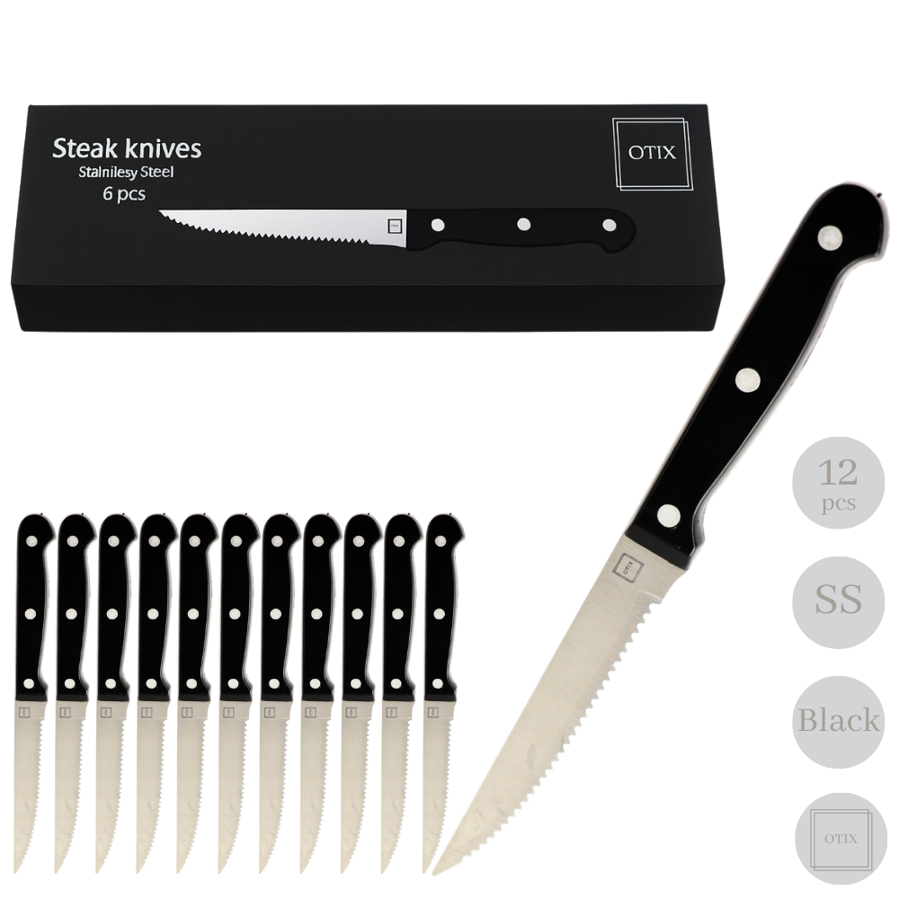 Geniet van een perfecte steak met de OTIX Steakmessen set. Deze set van 12 zwarte messen van roestvrij staal biedt stijl en functionaliteit voor elke etentafel.