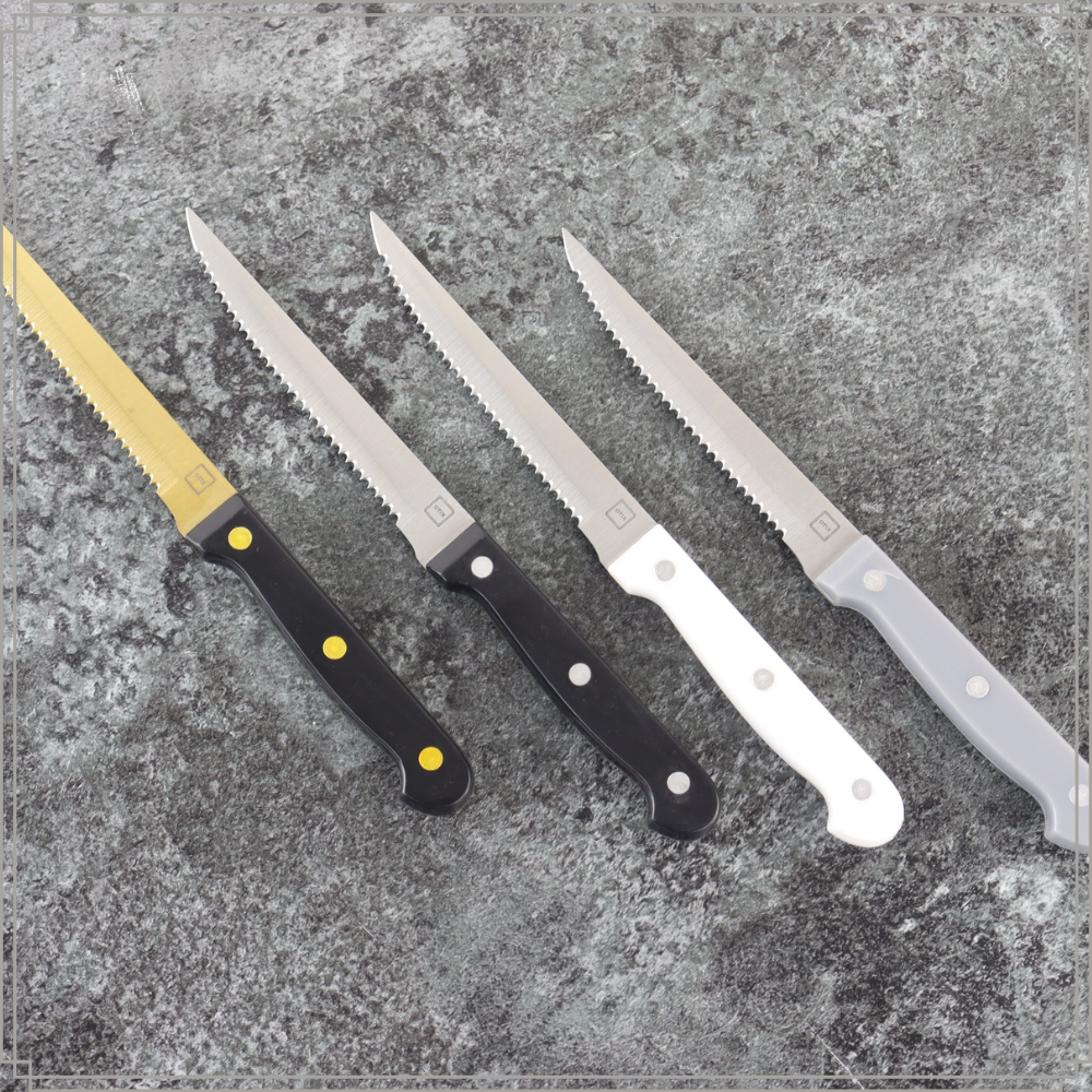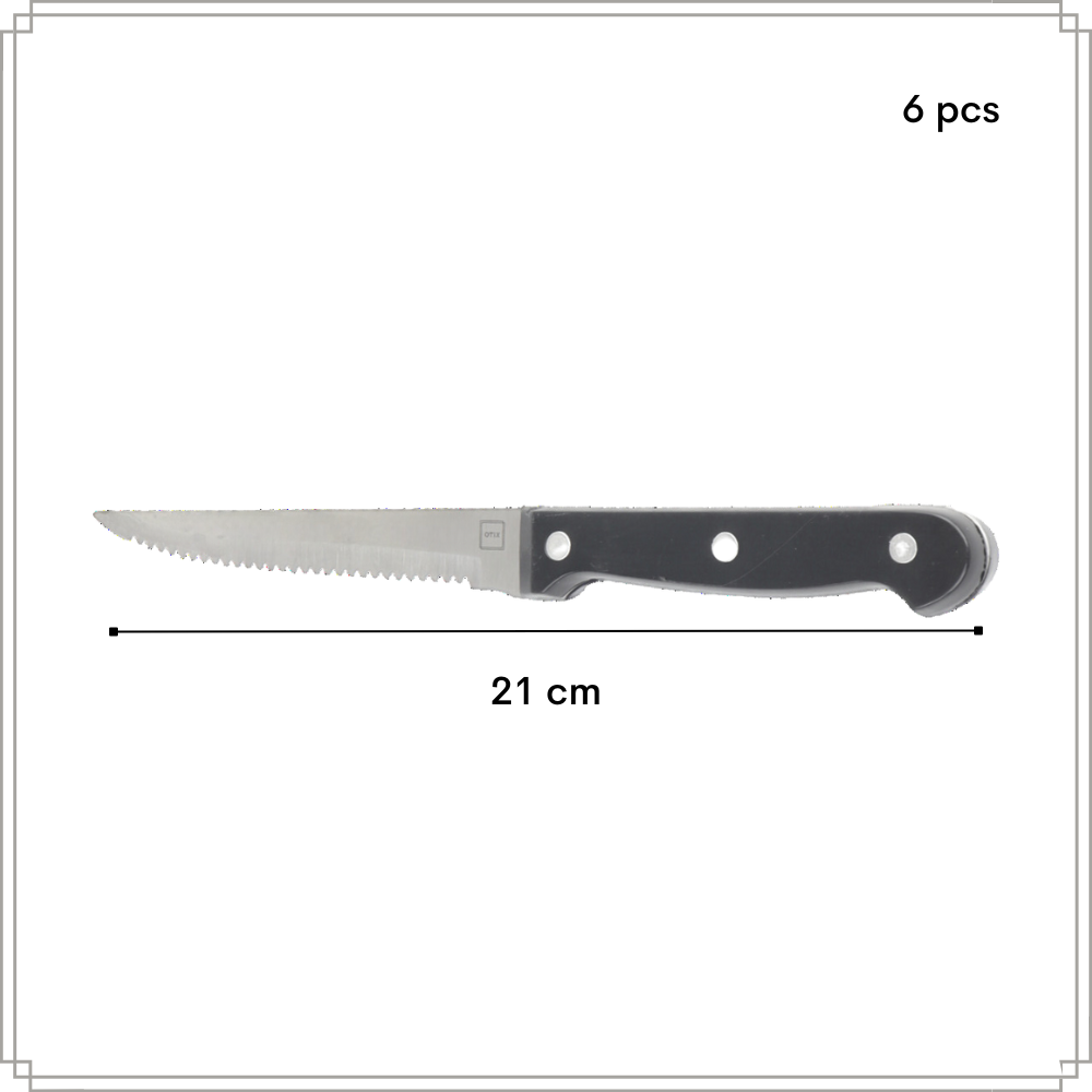 Geniet van een perfecte steak met de OTIX Steakmessen set. Deze set van zes zwarte messen van roestvrij staal biedt stijl en functionaliteit voor elke etentafel.