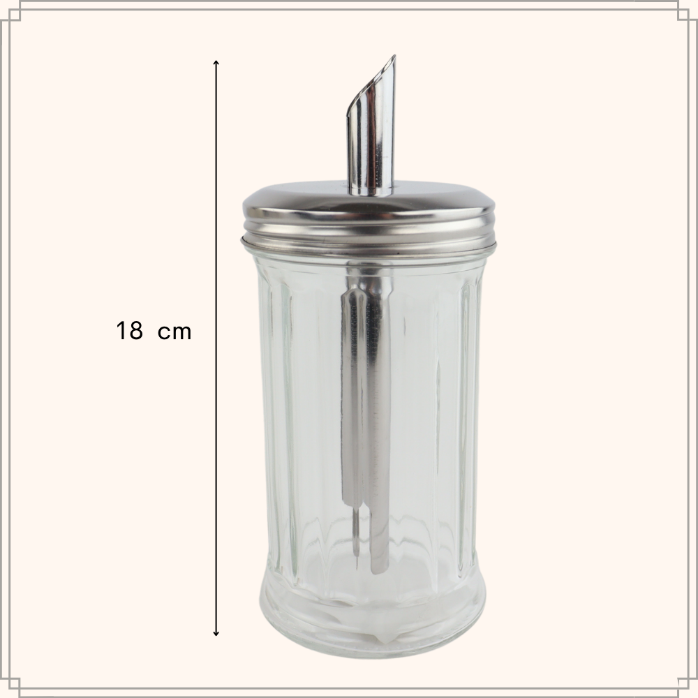De OTIX Suikerstrooier is een stijlvolle en praktische toevoeging aan je keuken. Gemaakt van glas, met een capaciteit van 300 ml en een hoogte van 18 cm, ideaal voor het doseren van suiker.
