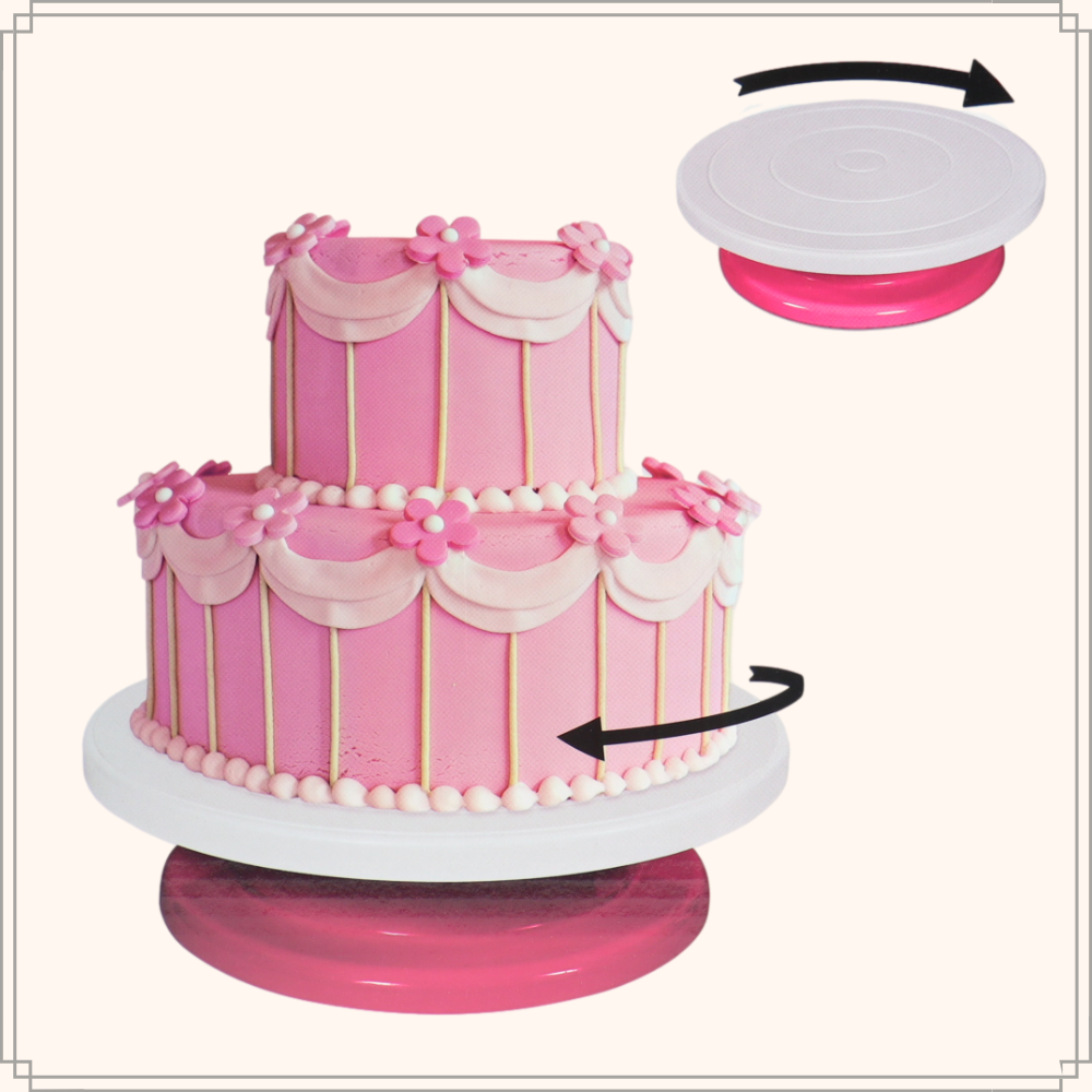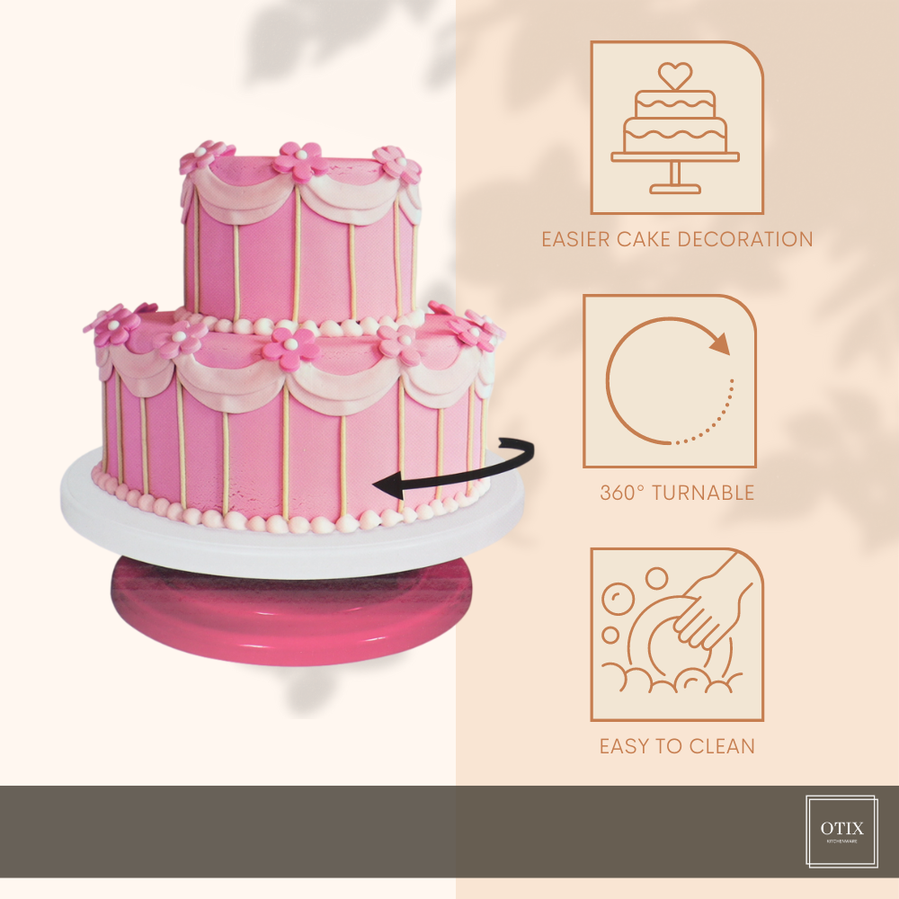 OTIX Taartplateau Roterend Draaiplateau op Voet Draaibaar 27,5cm Roze Kunststof