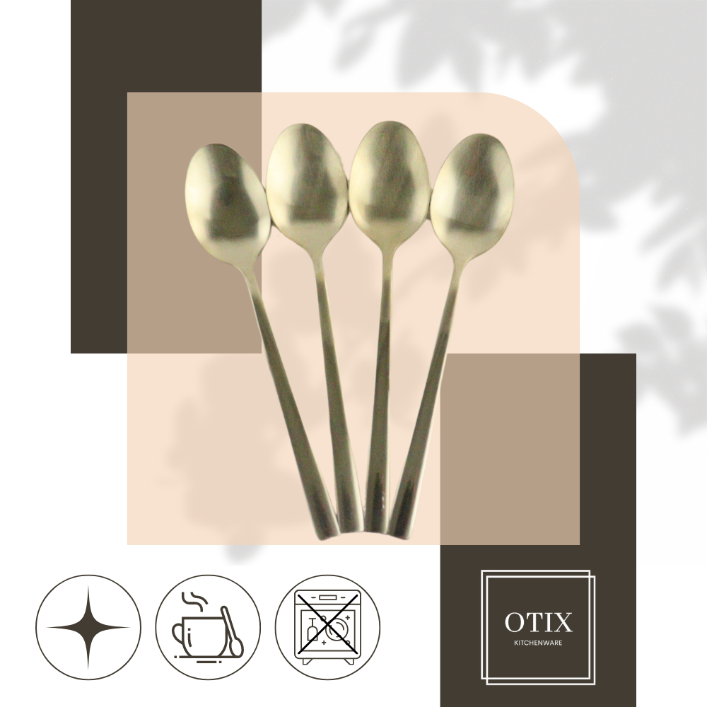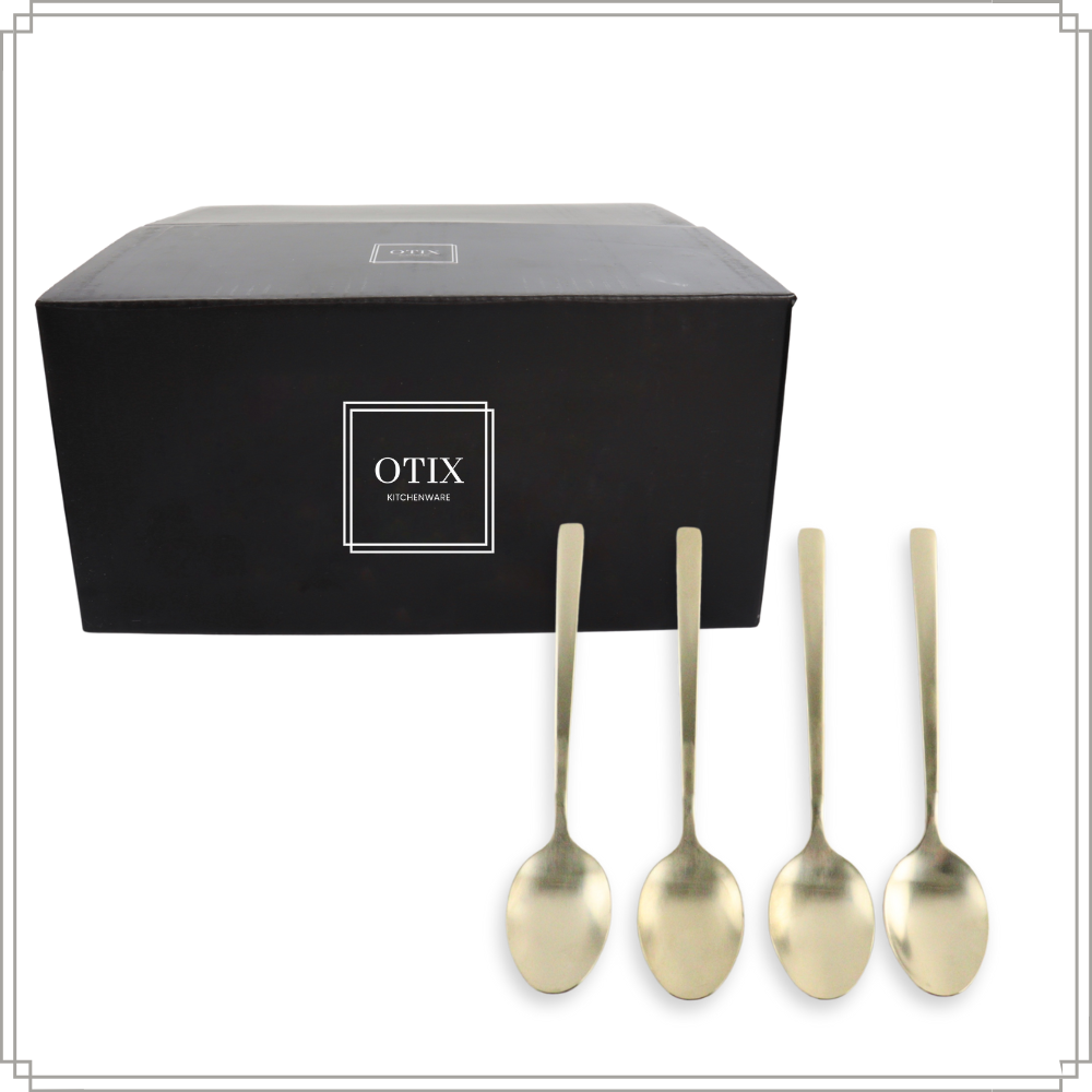 De OTIX Theelepels Koffielepels zijn een stijlvolle en praktische aanvulling op je bestekcollectie. Deze set van 4 kleine lepels is perfect voor het roeren van je favoriete thee of koffie, en biedt een elegante manier om van je warme dranken te genieten.