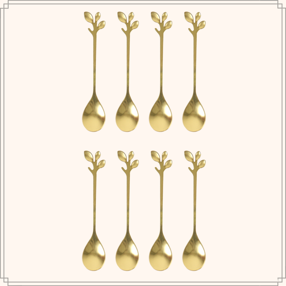 De OTIX Theelepeltjes Goud Bladeren Koffielepeltjes voegen een vleugje elegantie en stijl toe aan uw koffie- en theemomenten. Dit setje bevat 8 prachtige lepeltjes, elk versierd met gouden bladeren voor een luxueuze uitstraling. Gemaakt van hoogwaardig materiaal zijn deze lepeltjes duurzaam en geschikt voor dagelijks gebruik. Ze zijn perfect voor het roeren van uw favoriete warme dranken, het serveren van desserts of zelfs als decoratieve elementen voor speciale gelegenheden. Met hun comfortabele formaat liggen ze prettig in de hand.