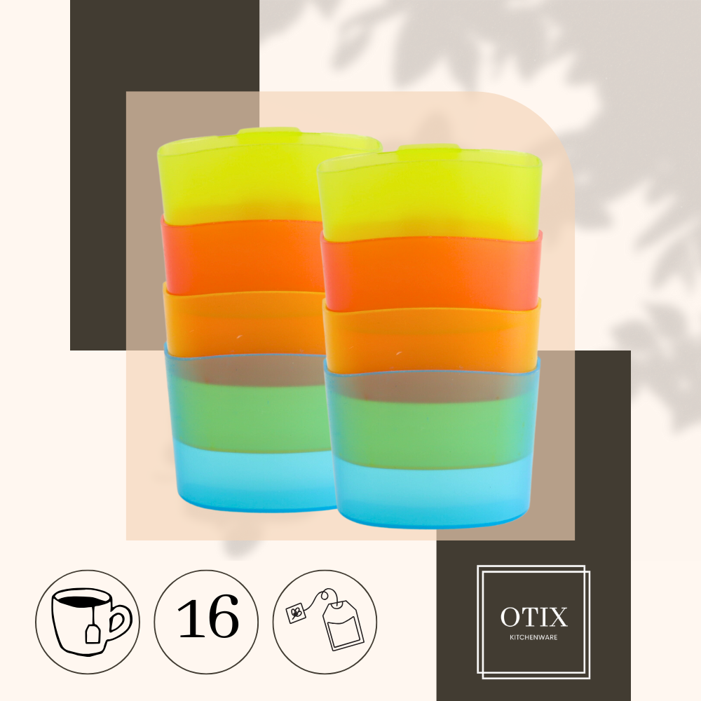 De OTIX Theezakjeshouder is een handige en kleurrijke oplossing om uw theezakjes op te bergen. Deze set bevat 16 houders in diverse kleuren, gemaakt van hoogwaardig kunststof dat lang meegaat. Elke houder heeft een kleine uitsparing in het midden, perfect voor het plaatsen van uw gebruikte theezakjes en het voorkomen van rommel op uw tafel. Deze theezakjeshouders zijn compact en gemakkelijk op te bergen.