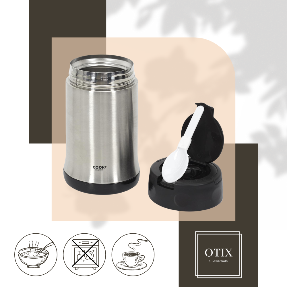 Ontdek de OTIX Soep Thermos: een handige 500 ml thermosfles in elegant zwart staal, compleet met een geïntegreerde lepel voor onderweg gemak. Houdt soepen en warme dranken urenlang warm, perfect voor drukke dagen en reizen. Een must-have voor liefhebbers van warme maaltijden onderweg, combineert stijl en functionaliteit in één. Deze handige soepbekers komen in een set van 2 stuks.