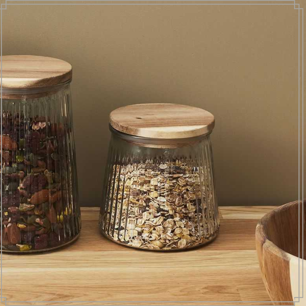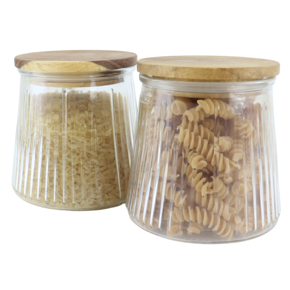 De OTIX Voorraadpotten zijn een prachtige en praktische set van twee snoeppotten, ideaal voor het opbergen van snoep, koekjes of andere lekkernijen. Met een inhoud van 650 ml bieden deze glazen potten voldoende ruimte voor al je favoriete snacks. De deksels zijn gemaakt van duurzaam acaciahout, wat een warme en natuurlijke uitstraling geeft aan je keuken of eetruimte.