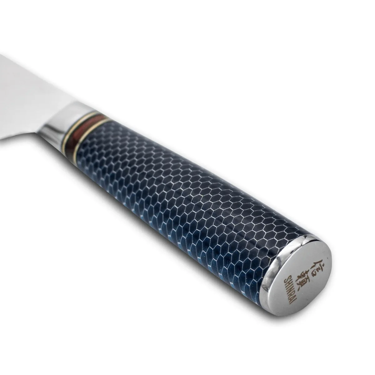 - Handgreep van hardhout met sapphire epoxy: Verrijkt met een zilveren honinggraatstructuur en vervaardigd uit één stuk, slijtvast en onderhoudsarm.