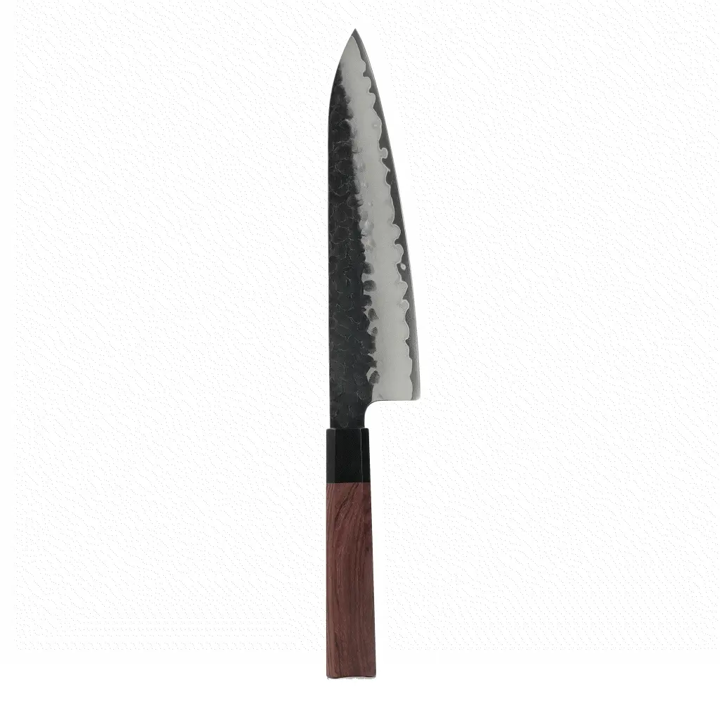 - Zwarte Bizon Hoorn: Het handvat van dit exclusieve koksmes is vervaardigd uit zwarte bizonhoorn en premium redwood, een combinatie die luxe en vakmanschap uitstraalt. Dit handgemaakte mes biedt een comfortabele grip en een uniek design, ideaal voor veeleisende koks die alleen genoegen nemen met het allerbeste. Een onmisbaar meesterwerk voor iedereen die op zoek is naar een hoogwaardig keukenmes met stijl en functionaliteit.