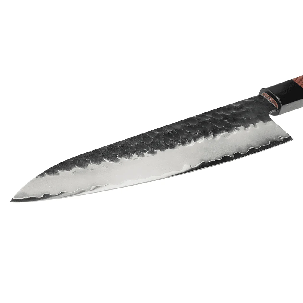 Gebruik regelmatig een slijpsteen of slijpstaaf. Hiermee behoud je moeiteloos de scherpte en precisie van je mes, verleng je de levensduur en blijf je genieten van een ongeëvenaarde snij ervaring.