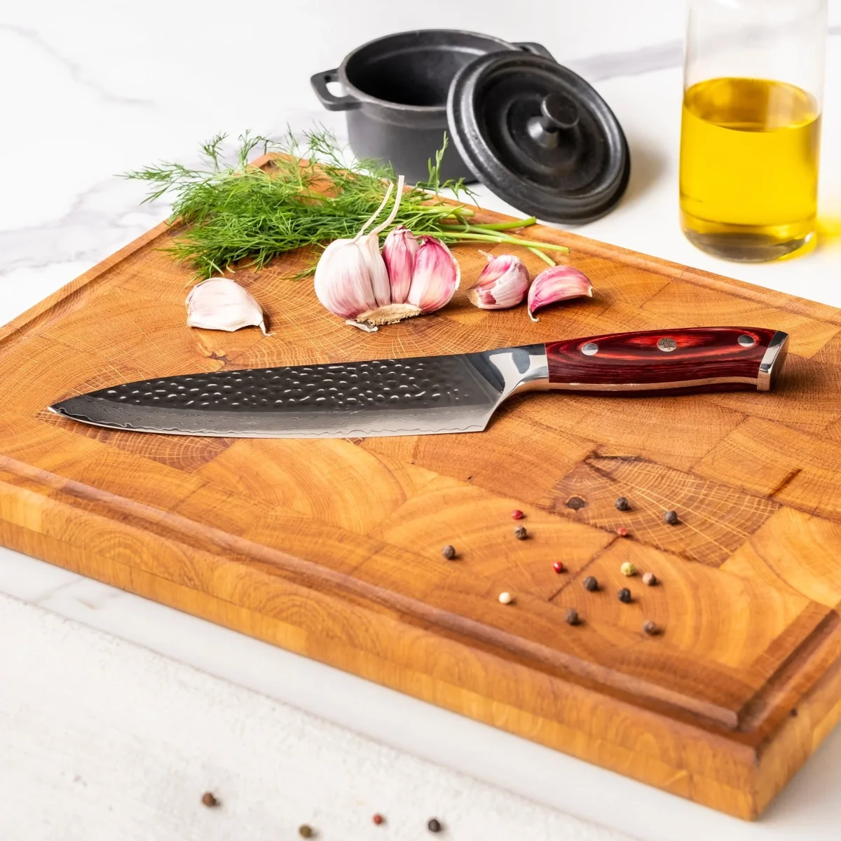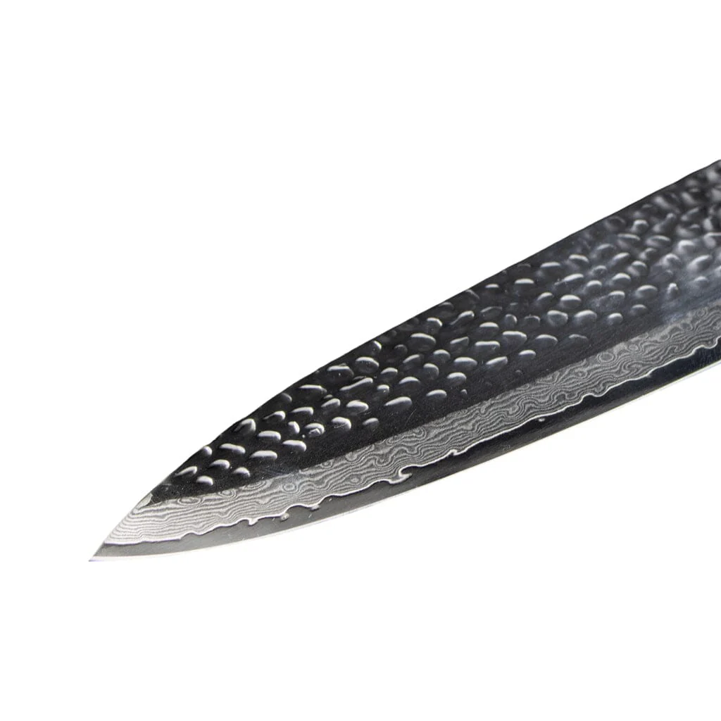 - 67-laags damaststaal met VG10-kern: Het lemmet bestaat uit 67 lagen staal, met een kern van hoogwaardig VG10-staal. Dit zorgt voor uitstekende scherpte, sterkte en langdurig gebruiksplezier.
