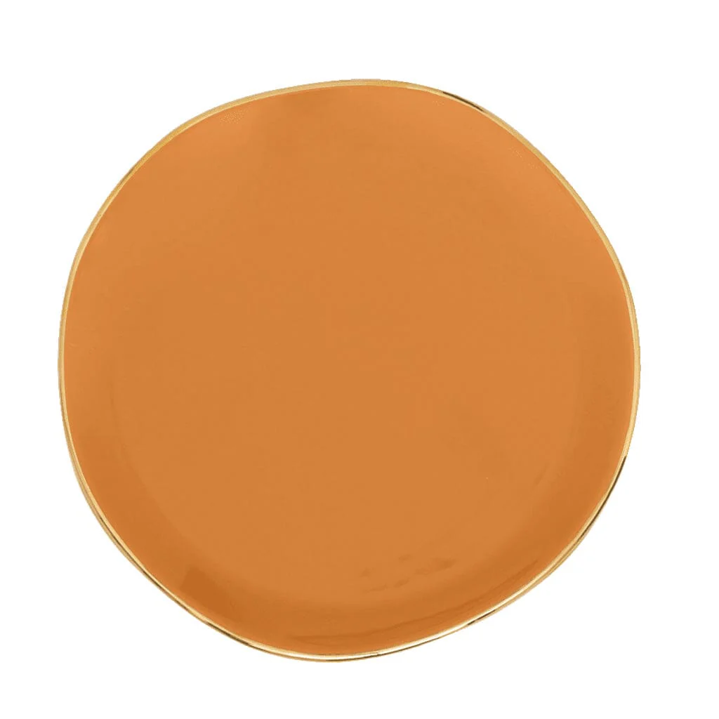 De zachte karameltint geeft een warme, natuurlijke uitstraling die moeiteloos past bij uiteenlopende serviesstijlen. De gladde glazuurlaag benadrukt het ambachtelijke karakter; kleine variaties in kleur en textuur onderstrepen het handgemaakte vakmanschap en maken ieder bord uniek. Het keramiek voelt stevig en puur aan, met een aangenaam glad afgewerkte rand die bijdraagt aan een verfijnde eetervaring.
