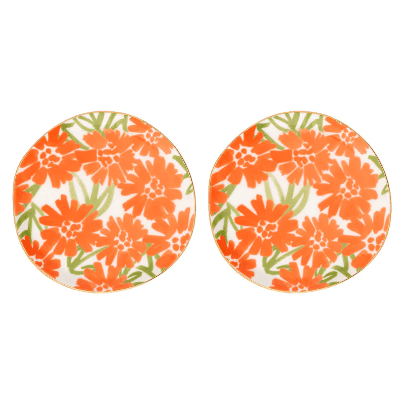 De Palesa-uitvoering is voorzien van een handgeschilderd bloemendessin in de warme kleur Carrot, gecombineerd met een verfijnde gouden rand. Deze combinatie geeft de bordjes een rustige en elegante uitstraling. Door het ambachtelijke karakter is elk bord met zorg afgewerkt en eenvoudig te combineren met andere items uit de Good Morning-serie.