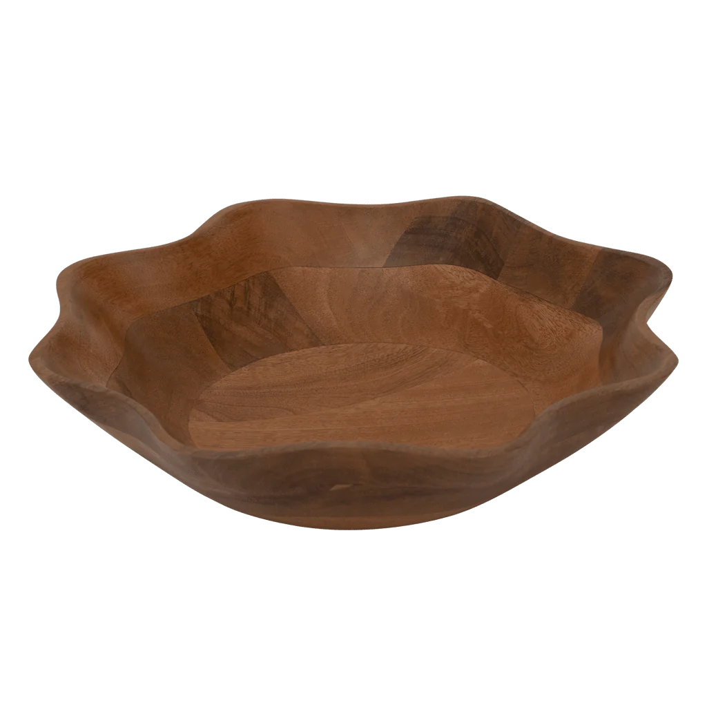 Urban Nature Culture brengt met de serveerschaal Bonnie een warm en natuurlijk middelpunt voor tafel en interieur. Deze royale schaal van mangohout in een diepe, goudbruine tint heeft een organische vorm en een elegant, handgesneden randdetail dat zorgt voor een verfijnd en tijdloos accent. Perfect voor het serveren van brood, fruit of droge lekkernijen, of als decoratief object op tafel of dressoir.