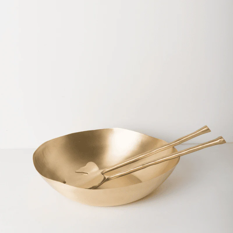 Urban Nature Culture brengt met deze salade servers een warm en verfijnd accent aan je tafelsetting. De set bestaat uit een saladelepel en -vork, gemaakt van messing in een brass gold tint met matte afwerking. Het sensueel gevormde ontwerp en de diepe gouden kleur geven elke salade een stijlvolle presentatie. Een materiaal dat met de tijd alleen maar mooier wordt.