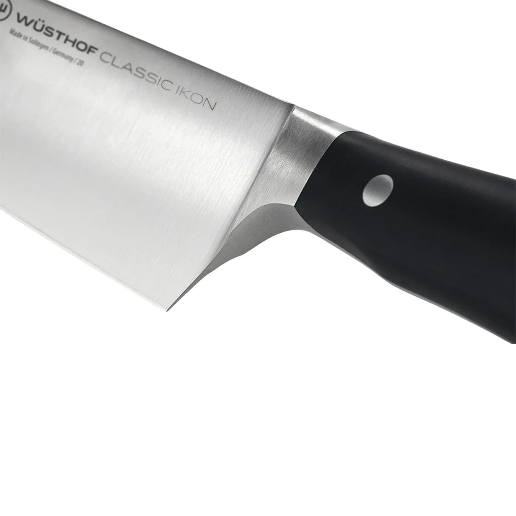 Het Wüsthof Classic Ikon Koksmes 23 cm is een onmisbare alleskunner voor elke professionele en thuischef. Of je nu vlees, vis, groenten of kruiden hakt, snijdt of fileert, dit mes biedt ongeëvenaarde precisie en gemak. Een elegant koksmes dat vakmanschap en functionaliteit combineert, ontworpen om het plezier van het bereiden van voedsel te vergroten.