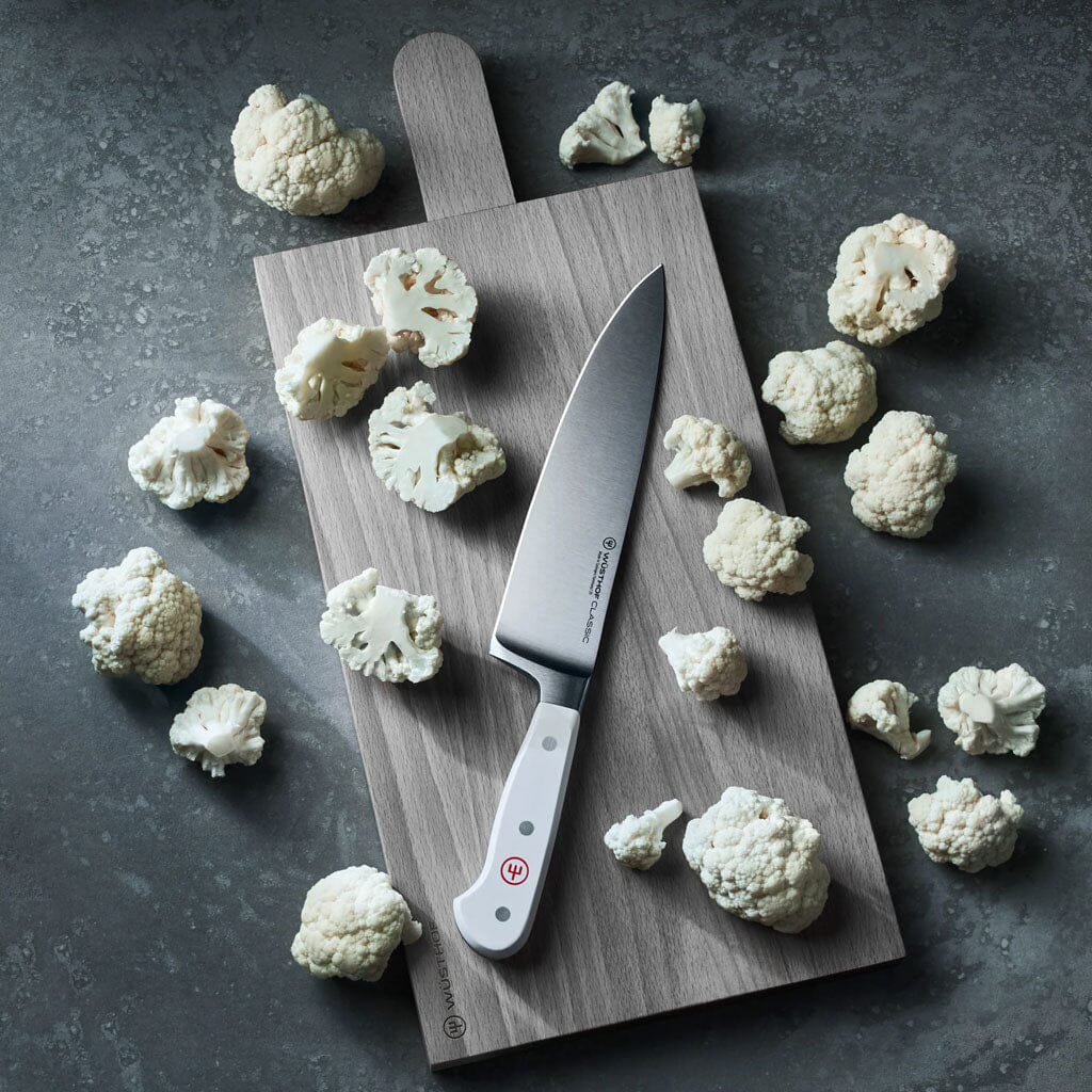 Deze uitvoering uit de Classic-serie blinkt uit in scherpte en ergonomie. De witte handgreep met roestvrijstalen klinknagels geeft het mes een tijdloze uitstraling. Dankzij de perfecte gewichtsverdeling ligt dit mes prettig in de hand, of je nu links- of rechtshandig bent.
