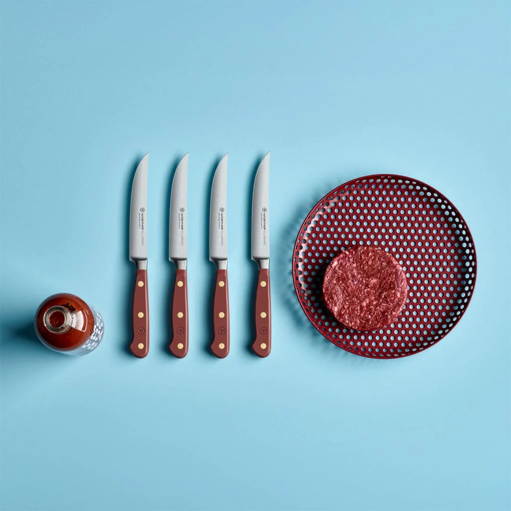 Het Wüsthof Classic Tasty Sumac Steakmes 12 cm is een onmisbare toevoeging voor elke thuischef en fijnproever. Of je nu een sappige biefstuk, braadstuk of filet snijdt, dit mes biedt ongeëvenaarde precisie en gemak. Een elegant steakmes dat vakmanschap en functionaliteit combineert, ontworpen om elke maaltijd moeiteloos te complimenteren.
