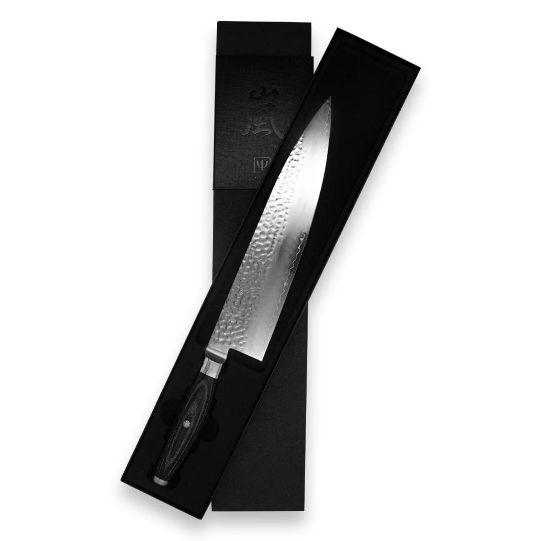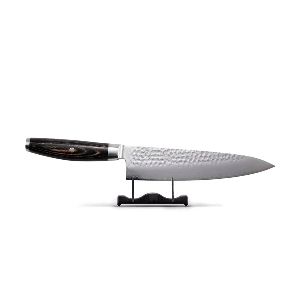 Geniet van het koken met de Ketu messen van Yaxell, voor een optimaal resultaat. De kanji van deze serie wordt uitgesproken als ‘kyoshi’, wat ‘smetloos’ of ‘puur’ betekent. Met een SG2-stalen kern met een hardheid van 63 Rockwell, ingesloten tussen twee lagen zachtere staal om de broze kern te beschermen tegen breken, heeft het mes een elegant uiterlijk. Het gehamerde uiterlijk geeft het een rustieke look. Het heft is gemaakt van zwart beuken Pakka wood en de krop heeft het Yaxell logo ran wat “wervelend” betekent.
