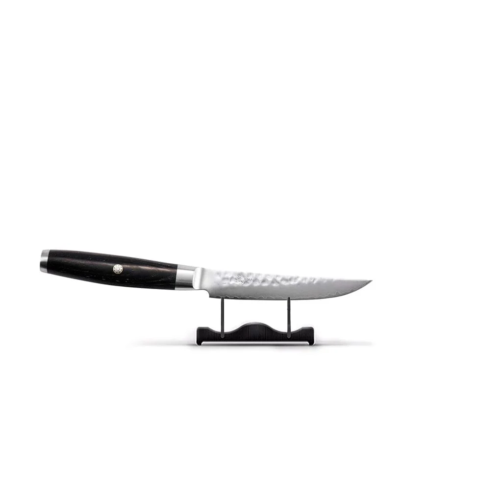 Geniet van het koken met de Ketu messen van Yaxell, voor een optimaal resultaat. De kanji van deze serie wordt uitgesproken als ‘kyoshi’, wat ‘smetloos’ of ‘puur’ betekent. Met een SG2-stalen kern met een hardheid van 63 Rockwell, ingesloten tussen twee lagen zachtere staal om de broze kern te beschermen tegen breken, heeft het mes een elegant uiterlijk. Het gehamerde uiterlijk geeft het een rustieke look. Het heft is gemaakt van zwart beuken Pakka wood en de krop heeft het Yaxell logo ran wat “wervelend” betekent.