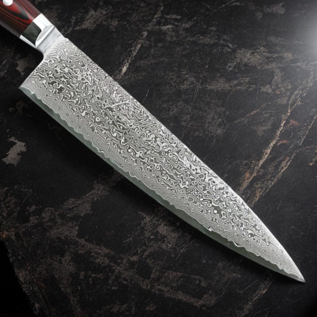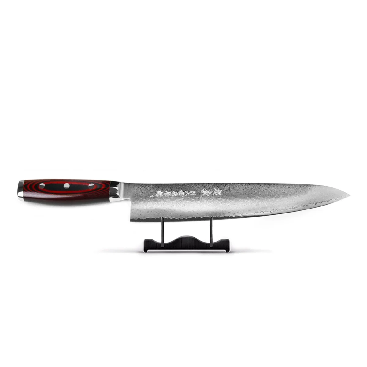 De Yaxell – Super Gou Koksmes 25,5 cm is een mes van zeer hoge kwaliteit. Het lemmet bestaat uit een SG2 hardstalen HRC63 kern met aan 2 zijden 80 lagen staal. Samen vormen zij een 161-laags damast patroon. Het mes is dan ook met recht uitmuntend te noemen.